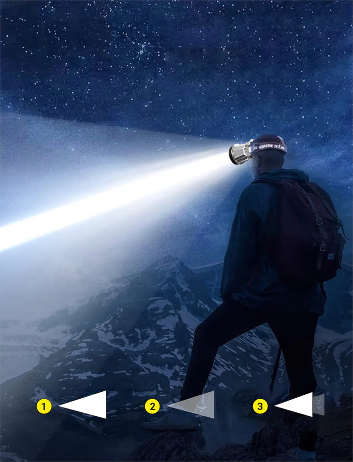 🌗 وضعين للإضاءة: عالي لو عايز أقصى نور، وواطي لما تحتاج إضاءة هادية وتوفير للبطارية.